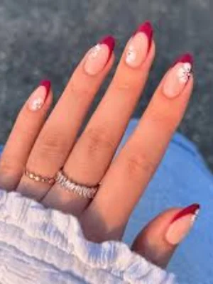 Classic red French tips with delicate florals offer a bold look. This floral French tip nail is timeless and great for making a statement. β€οΈπΈ