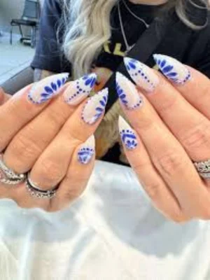 Blue & White Nail