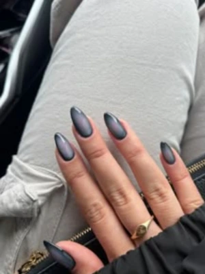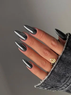 Jet gray nails are dark and dramatic with a sleek, smooth finish. They feel modern, bold, and sophisticated.