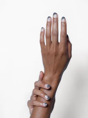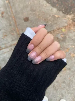 Gradient French nails mix soft shades of grey that slowly blend together. It feels fresh, smooth, and adds a little twist to the classic French look.