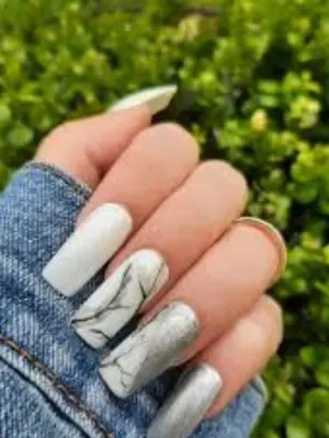 Silver chrome nails sparkle with a reflective, metallic finish. They feel futuristic, bold, and eye-catching.