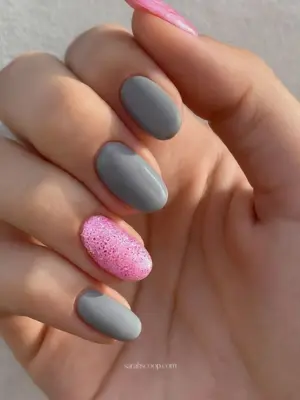 Gray nails with pink accents feel soft, playful, and sweet. The pink adds a gentle pop while keeping it stylish.