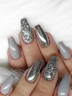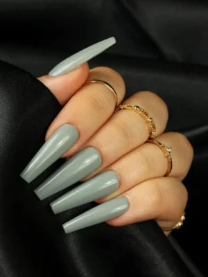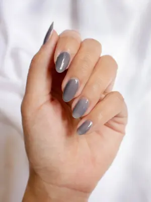 Platinum gray nails shine with a cool, silvery tone. They feel polished, modern, and a little luxurious.