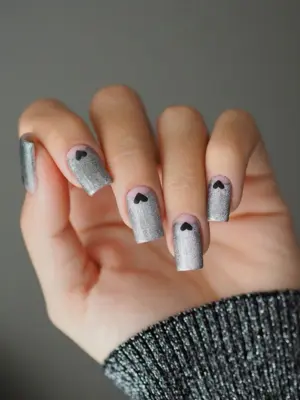Gray nails with tiny heart accents feel cute and playful. The soft gray keeps it stylish while the hearts add a sweet touch.