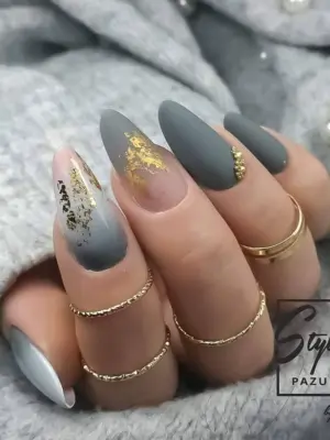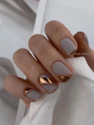 Gray and gold nails pair calm gray with a touch of shimmer. They feel elegant, classy, and just a bit fancy.