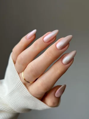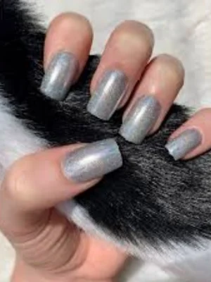 Shimmery gray nails catch the light with a soft sparkle. They feel magical, classy, and elegant.