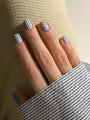 Gray nails with stripes feel simple yet trendy. The lines add a fun, modern detail without being too busy.