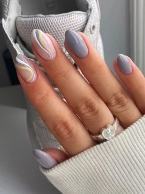 Swirl design gray nails have flowing patterns that feel playful and stylish. Each nail feels unique and fun to look at.