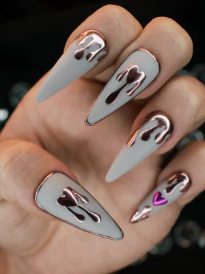 Gray chrome nails shine with a metallic finish that feels futuristic and polished. Theyβre smooth, sleek, and eye-catching.